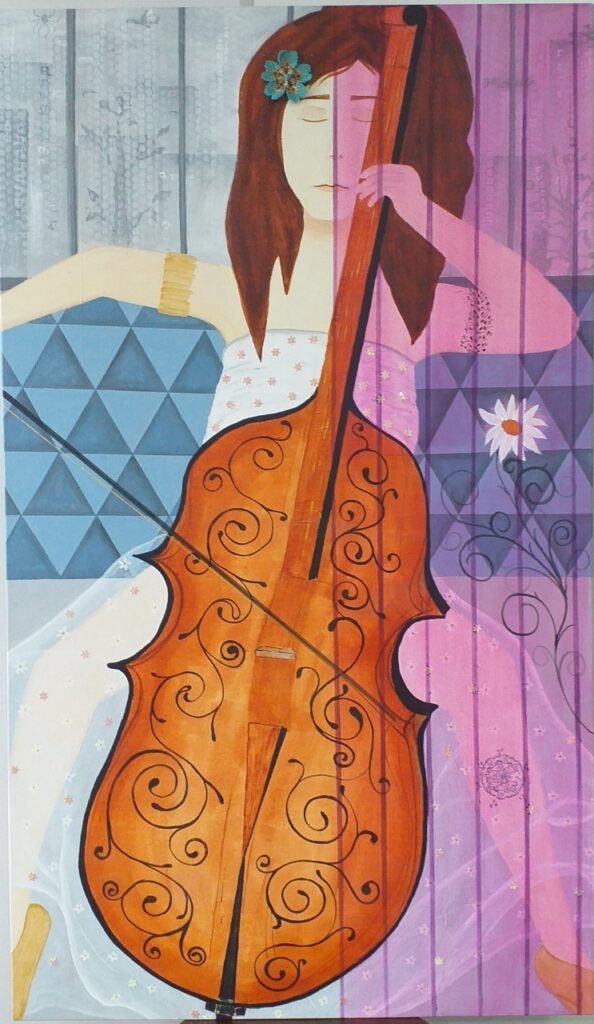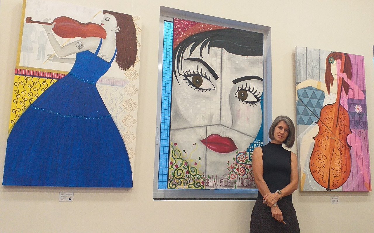 Nesta exposição, a artista nos convida a um diálogo entre música, cor e emoção. Cada tela é uma partitura visual — notas que dançam em gestos, silêncios que vibram em nuances, timbres que se materializam em pinceladas. As Mulheres Musicistas retratadas não são apenas intérpretes, mas símbolos da criação, da liberdade e da sensibilidade que transformam o som em sentimento e a arte em permanência.