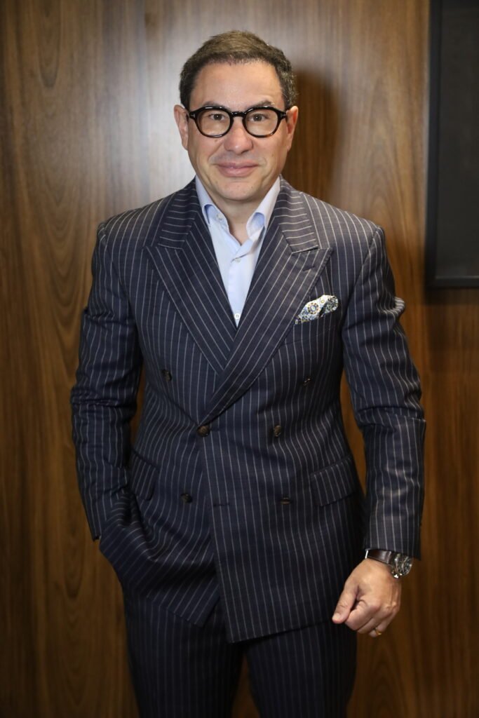 “Posso dizer que revolucionei a alfaiataria. Sempre tive dentro de mim esse espírito empreendedor, de querer crescer, de querer mudar. De transformar a loja num ambiente para pessoa ter uma experiência melhor”, afirma Flávio. Aliás, foi necessário se reinventar porque em 2008, quando o sogro se aposentou e ele comprou a loja, mudando a marca, havia uma verdadeira invasão de peças chinesas, produzidas em larga escala e muito mais acessíveis que os trajes sob medida. “Tive que reinventar nessa época, para que o cliente tivesse uma experiência de alfaiataria e não querer comprar uma peça chinesa.”