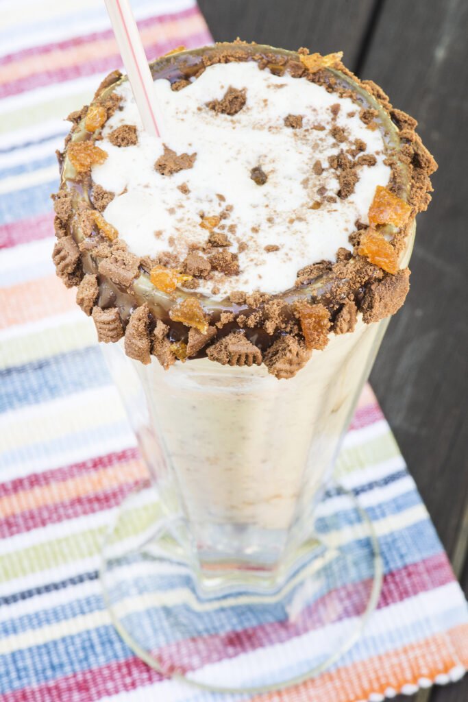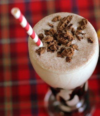 - Coloque um pouco de calda de chocolate no fundo da taça antes de servir o milk-shake e decore com alguns biscoitos triturados.