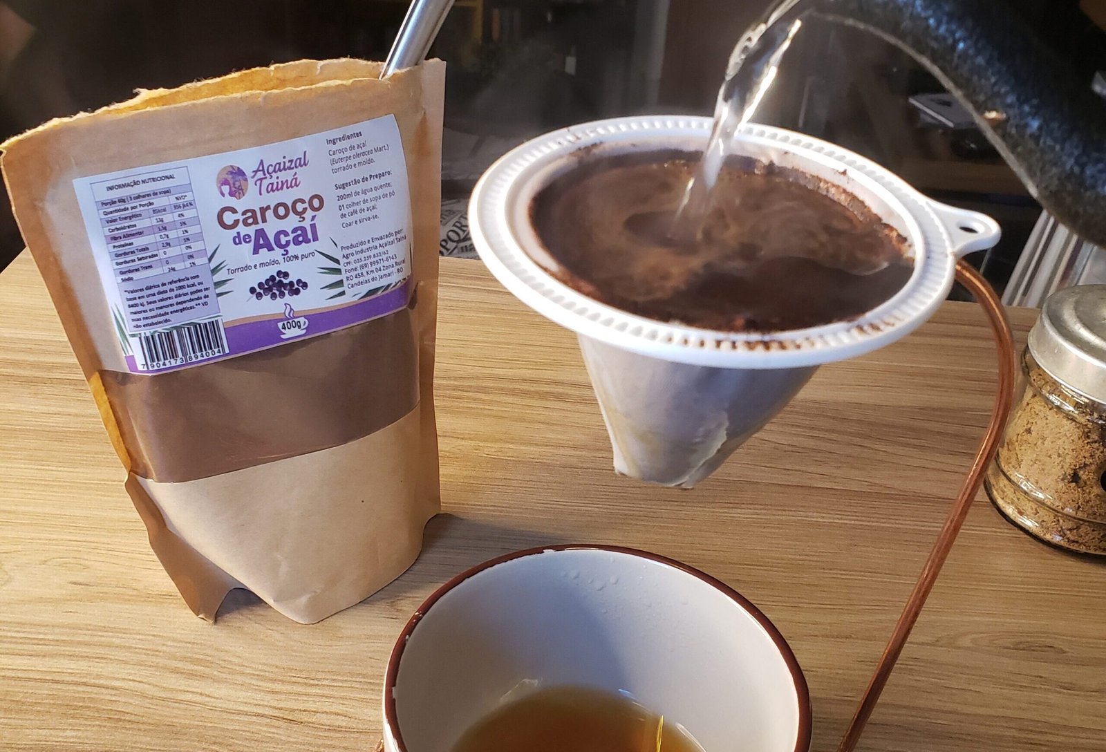 Sim, popularmente é o Café do caroço do Açaí. É um produto que ficou conhecido assim porque, tanto a produção como o preparo remetem ao café que tradicionalmente consumimos. Na produção há a tanto a etapa da torra como da moagem. Sendo torrado e moído, se produz na forma de um pó cujo odor remete à polpa do açaí e cujo sabor lembra um pouquinho do café devido às notas de amargos consequentes da torra. No preparo os procedimentos são os mesmos do café. É preciso passar, ou melhor, coar o pó na água quente.