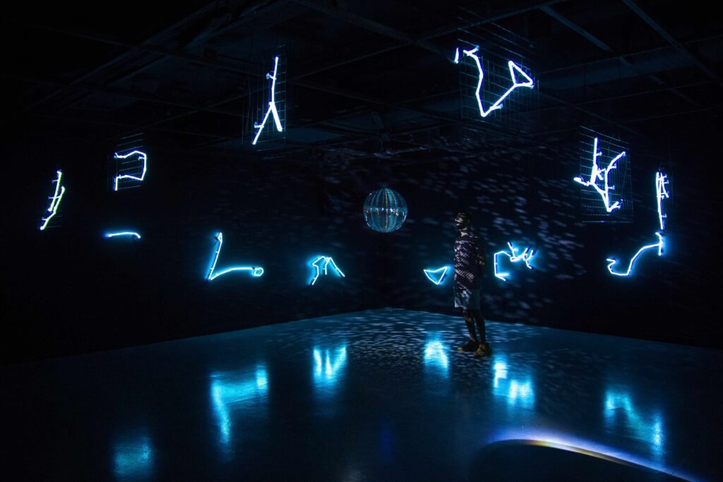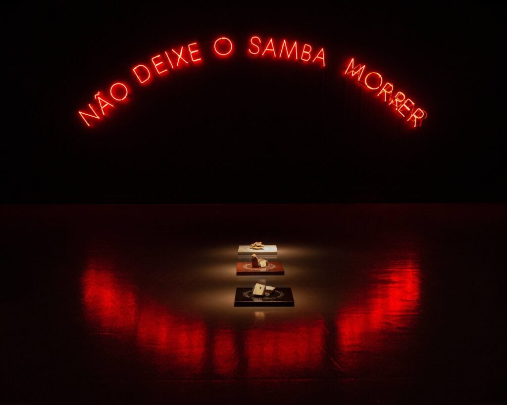 Entre os destaques da mostra está a série Samba Exaltação (2021), que homenageia o samba e o Carnaval com fotografias em backlight e letreiros com versos de sambas históricos. Já a instalação Solaris Discotecum (2023) convida o público a dançar com os planetas e as estrelas, em uma pista de dança cósmica iluminada por constelações em néon.