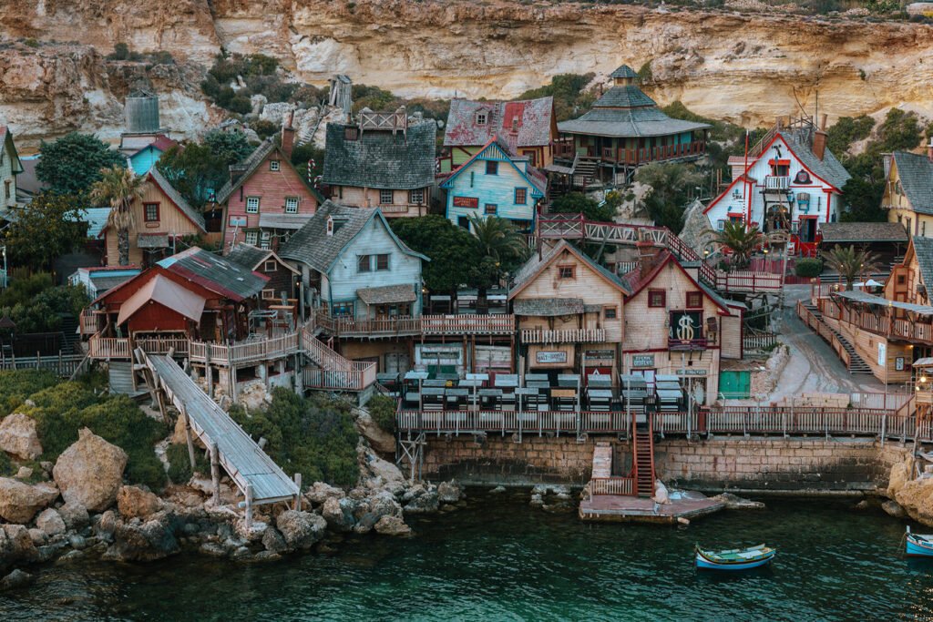 Fica em Anchor Bay, ao norte de Malta, a cidade cenográfica criada para o filme Popeye (1980) com Robin Williams e que depois se transformou em parque temático para visitantes de todas as idades. A Popeye Village reúne atrações que vão de shows temáticos, encontro com personagens a piscinas para adultos e crianças, jogos, mini golfe, esportes aquáticos, tudo na cidade cenográfica com suas casinhas típicas. O ingresso custa 24€ para adultos e 16€ para crianças (taxas de alta temporada).