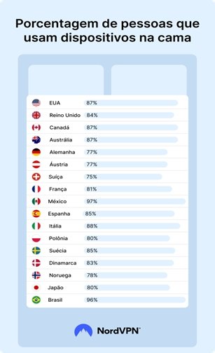 Com base nas respostas coletadas, a NordVPN faz um alerta para que os brasileiros adotem práticas mais seguras ao utilizar o telefone na cama. Algumas recomendações incluem: