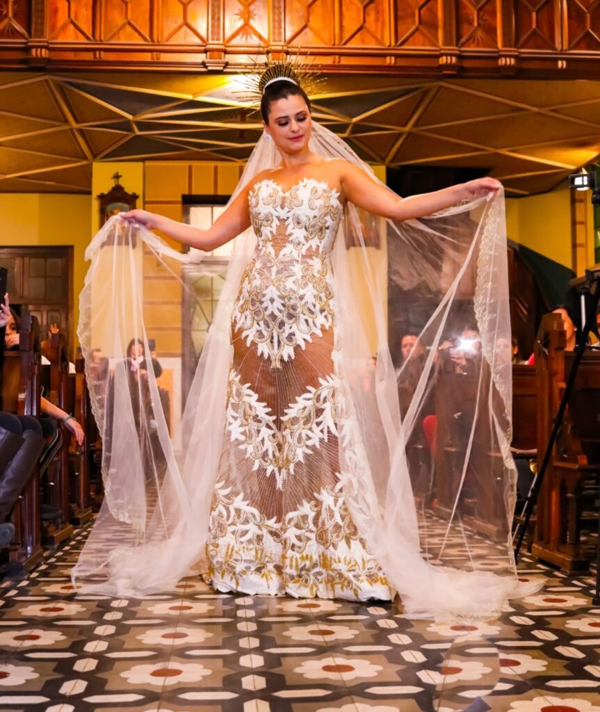 O destaque ficou com o renomado estilista Edson Eddel(@edsoneddelnoivas), com dezenas de participantes que trouxeram para a passarela do altar, momentos de cor, brilho, ousadia e inclusão, com desfile de criativos modelos de vestidos, dentro dos espaços da programação denominados “Desfile de Vestidos Votivos” e “Vamos Colorir o Altar”.
