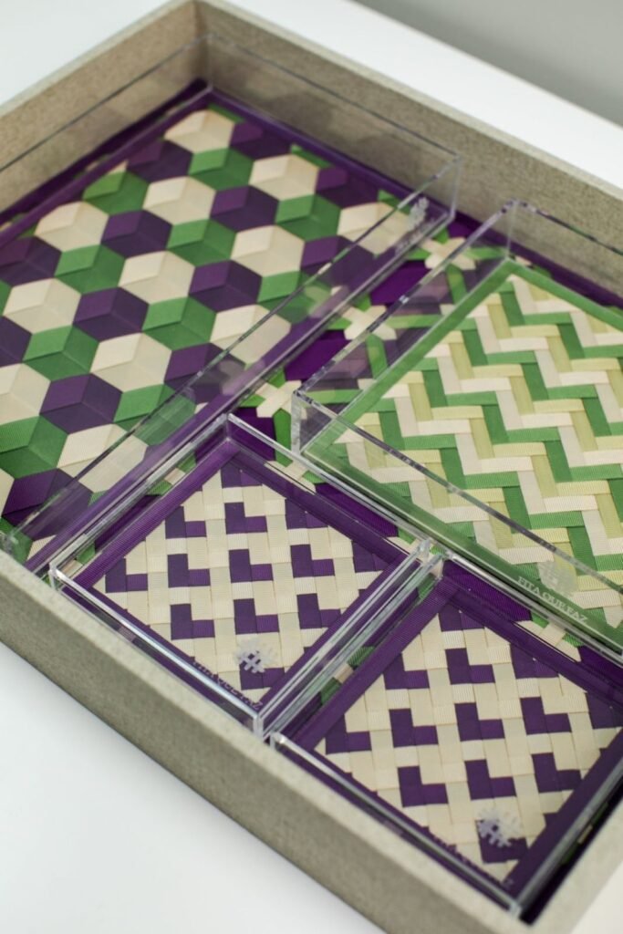 “Começamos voltadas ao mercado de eventos, com a inovação de backdrops, compostos pelas tramas de fitas. Mas, a demanda chegou de todos os setores do mercado. Por isso, criamos também produtos de decoração de interiores, como bandejas, almofadas, quadros.
