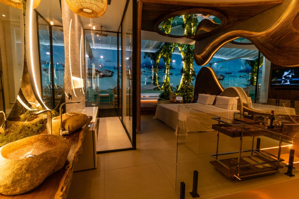 As suítes no Luna Blu possibilitam espaços de intimidade e sensualidade, mas também oferecem locais de relaxamento e privacidade ao casal. “Ao todo são dois estabelecimentos. No Luna Blu Concept, por exemplo, os visitantes podem usufruir das suítes temáticas com os elementos da natureza que são a água, ar, fogo, terra e metal. Já no Luna Blu Studio as suítes são paradisíacas, com ambientes que remontam ao clima caribenho de Tulum e ao ambiente luxuoso nas Maldivas”, explica.