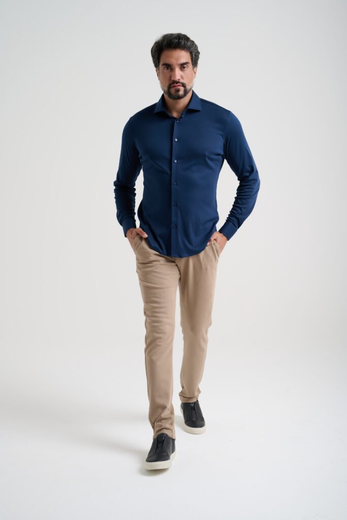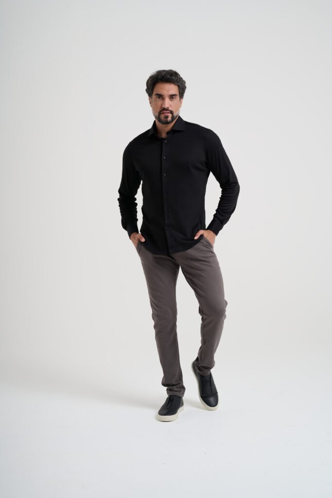 A peça surge a partir de uma mudança clara de comportamento pós-pandemia. O público deixou de aceitar camisas rígidas, que limitam movimentos e exigem manutenção constante, e passou a valorizar praticidade, liberdade e tecidos mais inteligentes. A Camisa Social Malha responde diretamente a essa demanda ao combinar o visual clássico da camisa social com a sensação de uso de uma camiseta, tornando-se uma solução versátil para quem transita entre ambientes profissionais e casuais ao longo do dia.