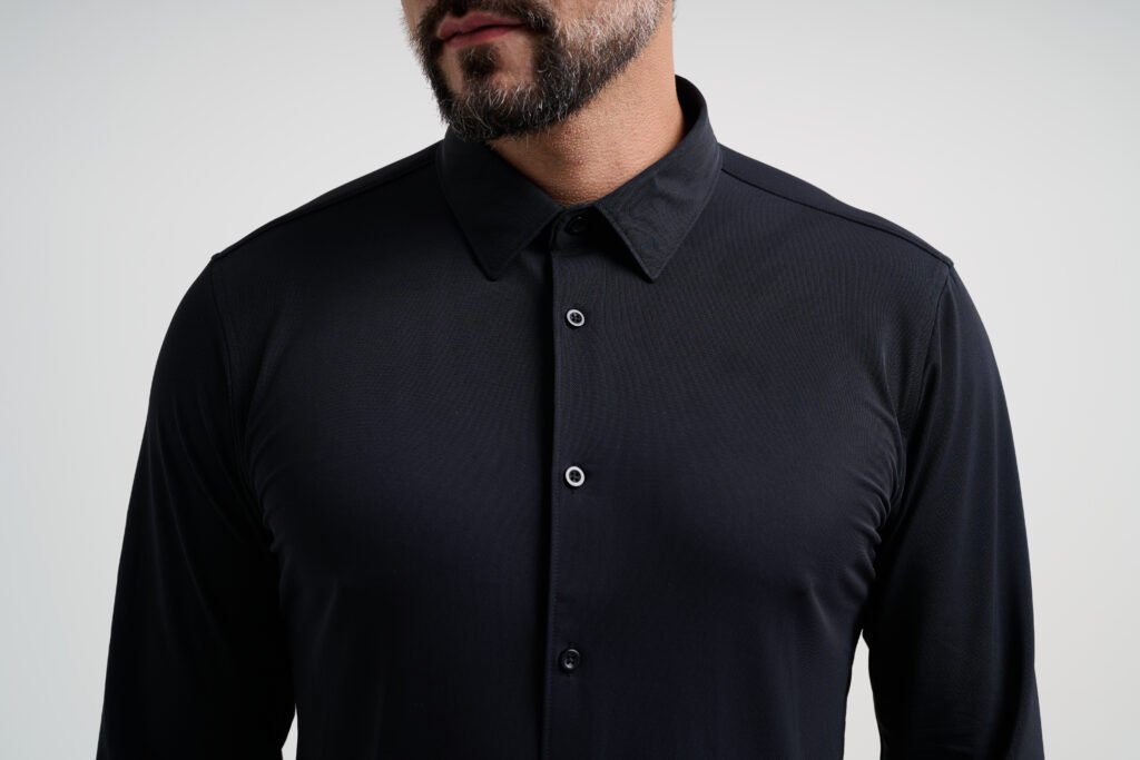 Do ponto de vista técnico, o diferencial está no tecido de malha premium, que oferece toque macio, elasticidade natural e alta respirabilidade. A construção garante melhor regulação térmica, conforto prolongado mesmo em jornadas longas e mobilidade sem restrições. Além disso, a peça não amassa com facilidade, tem secagem rápida e reduz a necessidade de passar, características especialmente valorizadas por quem viaja com frequência ou mantém uma rotina dinâmica. Os acabamentos reforçam o visual social clássico, com gola estruturada, costuras limpas e caimento mais organizado, sem marcar excessos de volume corporal.