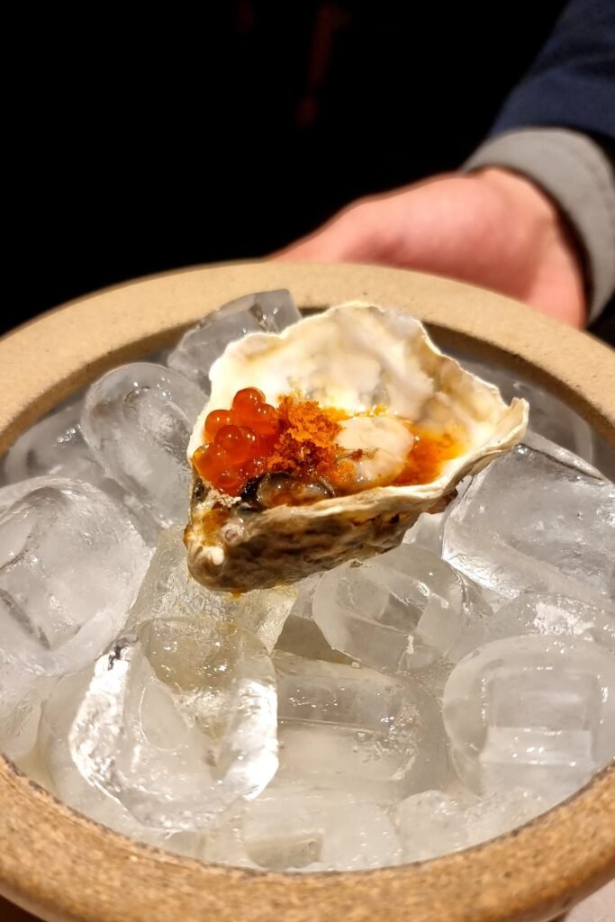 Ostras de Cabaraquara com ponzu de tomate e ovas de ikura – R$25,00