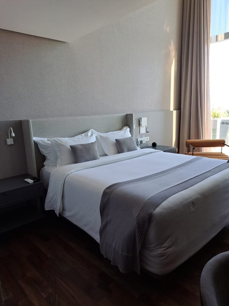 A revista escolheu a modalidade Day Use com almoço, para conhecer e desfrutar do local! Tudo começa com um check in acolhedor, tanto para quem é fit quanto para quem prefere bebidas mais convencionais. Enquanto os trâmites burocráticos acontecem um simpático concierge oferta água aromatizada e cafés, que podem ser adoçados com chocolate. Em sequência, todas as instalações são apresentadas, o que causa encantamento, já que cada ambiente é mais agradável que o outro, a começar pela decoração e terminar com a vista. Para quem valoriza horizonte, vale conhecer o rooftop, já os que preferem relaxar, é urgente passar pelo SPA da Tereza Zanchi e agendar uma massagem, antes mesmo de deixar bagagens no quarto.