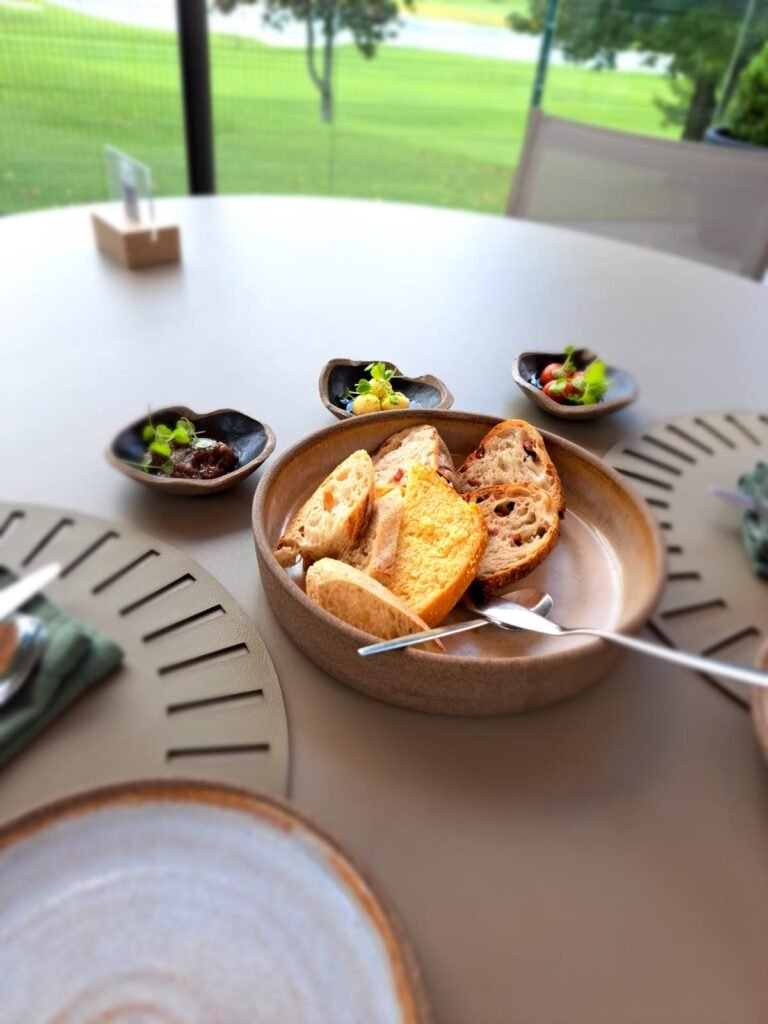 Quando a fome bater, basta descer um andar e curtir o restaurante de primeira qualidade que há no hotel. O koré sugeriu alguns pratos e o menu escolhido para o almoço também agradou muito. Entradas simples, mas saborosas, com pães sortidos, pesto de ervas, manteiga e pasta de figos. Prato principal feito à perfeição, com risoto de limão siciliano, peixe e aspargos. E, sorvete envolto por coulis de morangos. Para finalizar, café com creme e trufas de maracujá.