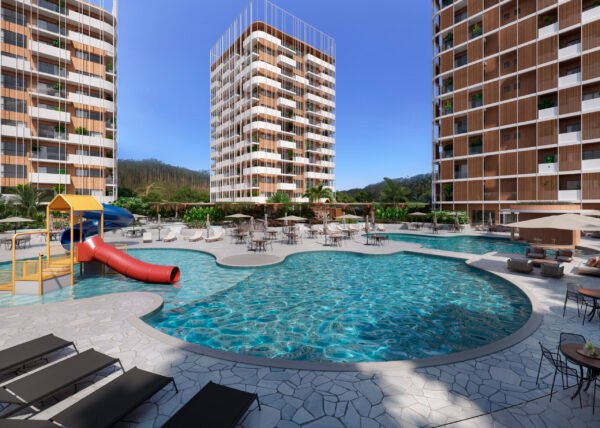 Com uma área total de 20 mil m² distribuída em três torres, o resort oferecerá acomodações para até 1.056 hóspedes, com atrações como uma piscina de 420 m², brinquedos aquáticos, trilhas ecológicas, quadras de beach tennis e tirolesa. Além disso, o complexo contará com academia, coworking, restaurante, spa e um bar à beira da piscina para garantir uma experiência completa de lazer e descanso.