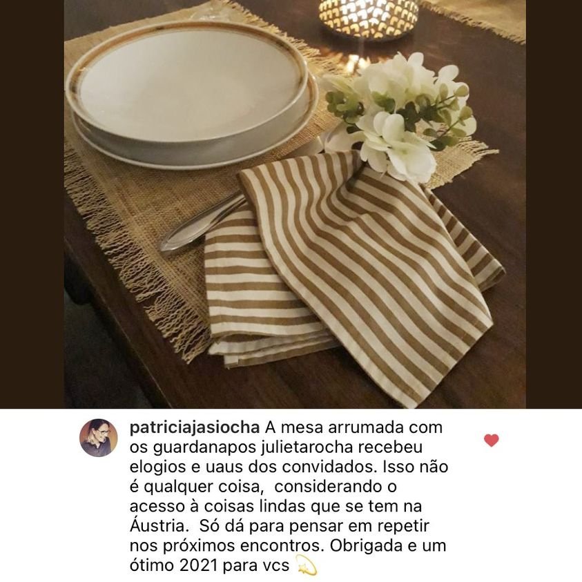 O que era um sonho vindo de boas memórias familiares virou realidade, surgindo, assim, a marca Julieta Rocha Guardanapos de Estilo, que complementa o aspecto profissional da vida de Jusmara Medeiros.